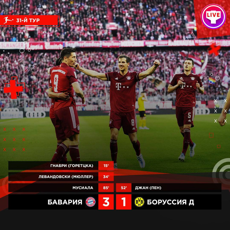 🏆«Бавария» досрочно оформила чемпионство! Десятое кряду! 23.04.2022Спортadmin 🇩🇪 Бавария 3:1 Боруссия Д 🇩🇪 Не забудь поделиться новостью