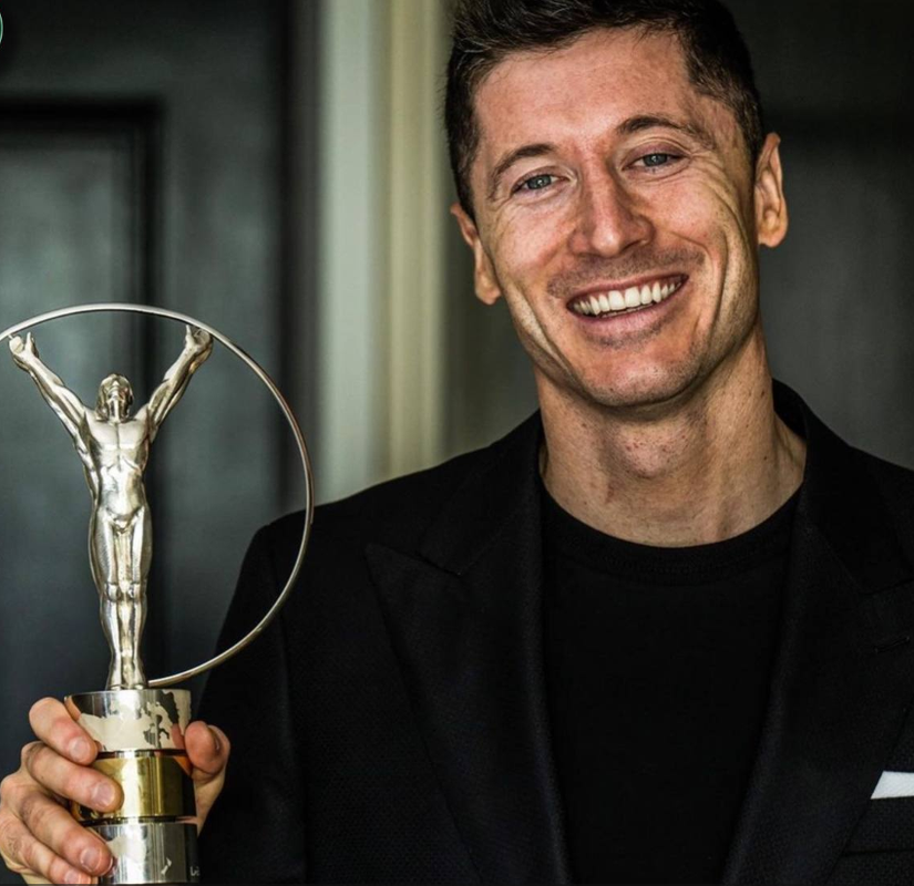 Левандовски получает награду Laureus Academy 25.04.2022Спортadmin 🏅Роберт Левандовски получает награду Laureus Academy за то, что побил рекорд Герда Мюллера по количеству забитых голов (41) в одном сезоне Бундеслиги и его благотворительную деятельность вне поля 👏 Не забудь поделиться новостью